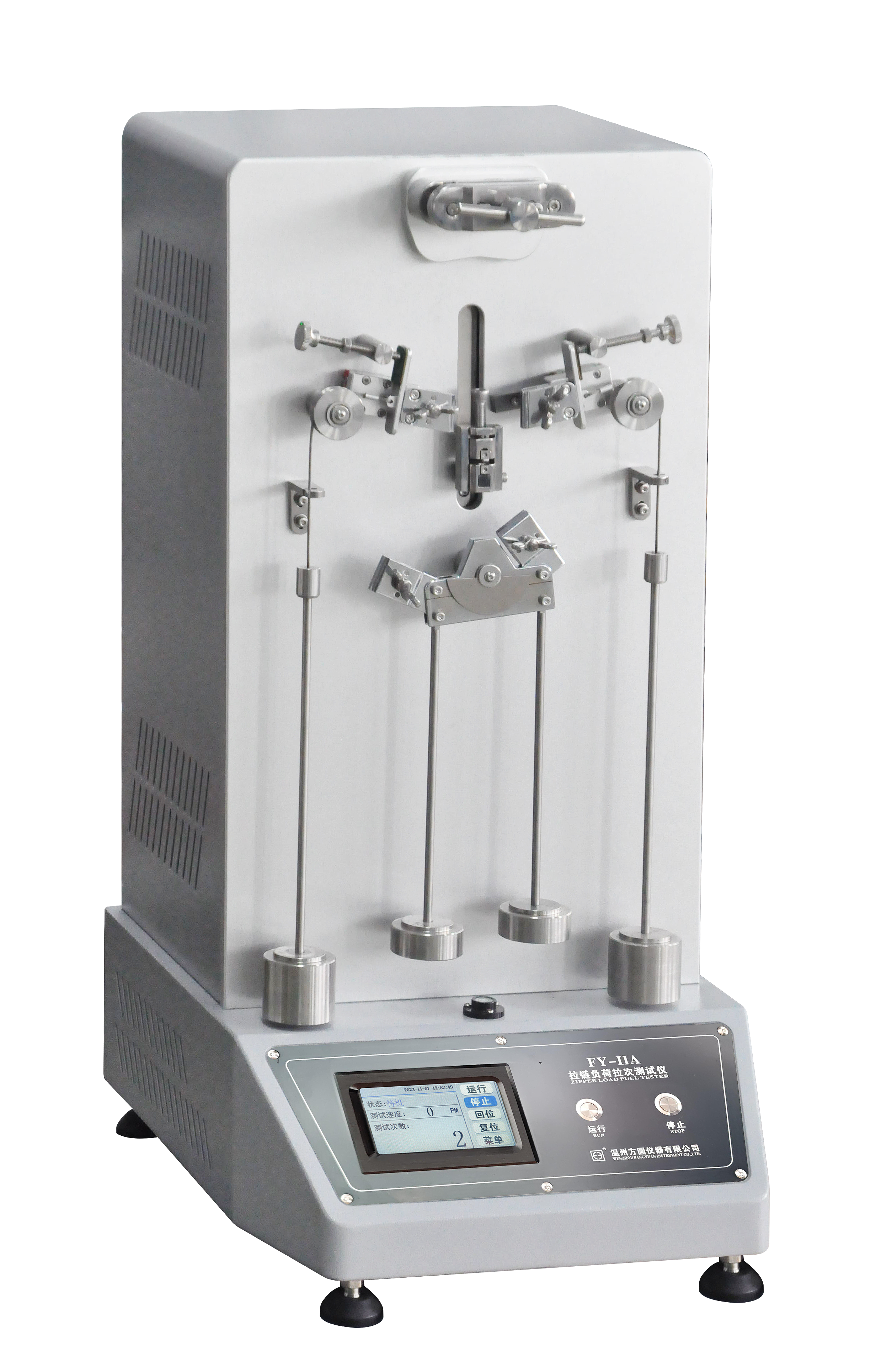 Principle: Hold the sample on the gripper, apply a weight to fix the load on the sample, use a motor to drive the gripper to reciprocate, and test the life ofthe zipper