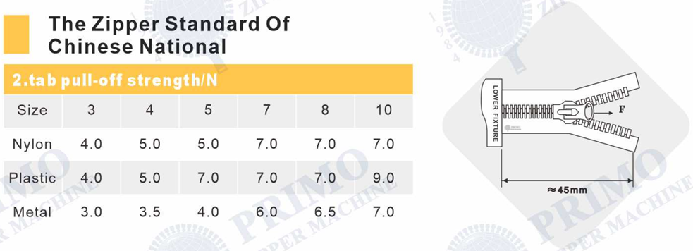 maximum force ofthe zipper during the entire process of opening and closing