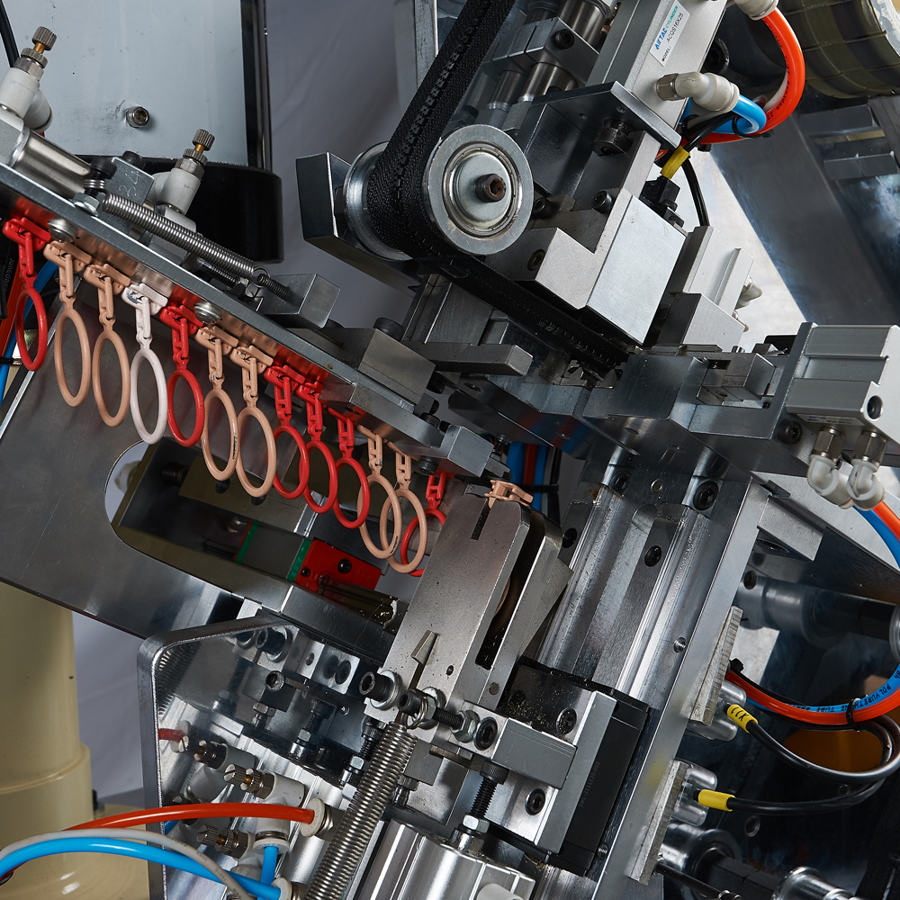 This zipper machine universal system accommodates sliders of all configurations for precision zipper assembly.